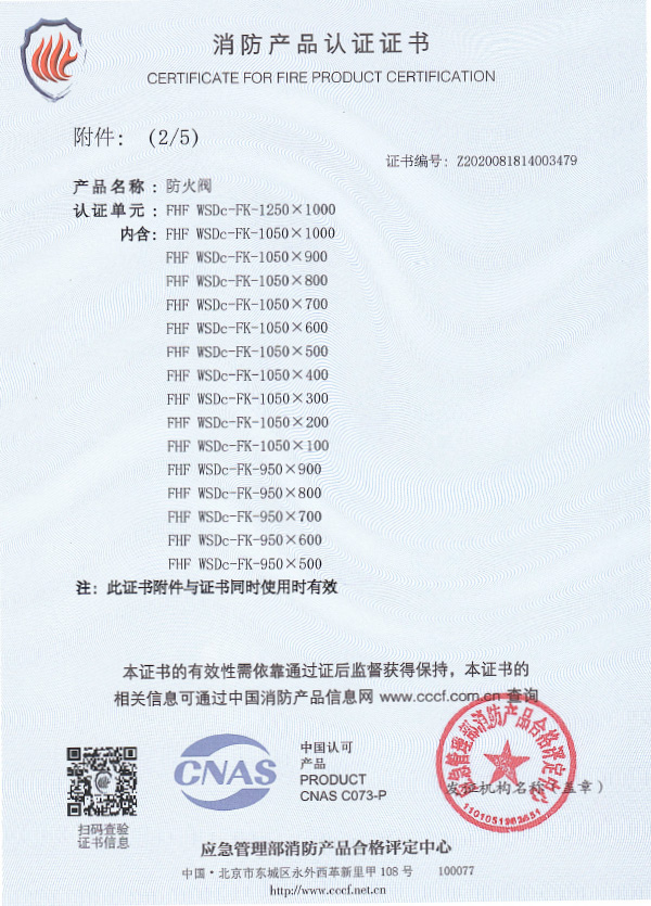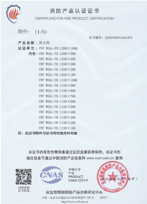 防火閥認證證書1250X1000