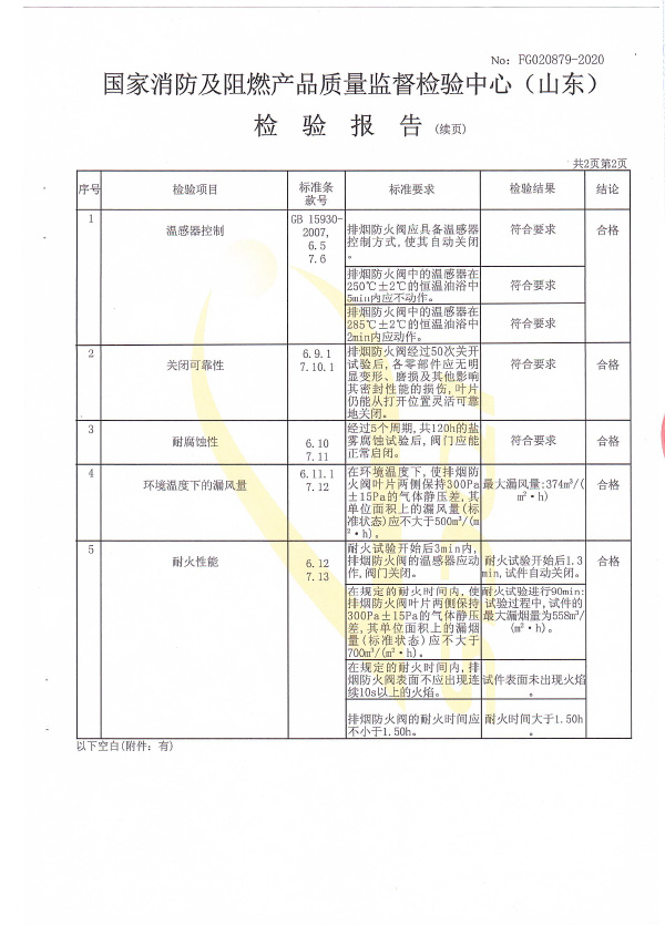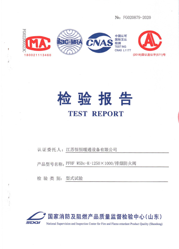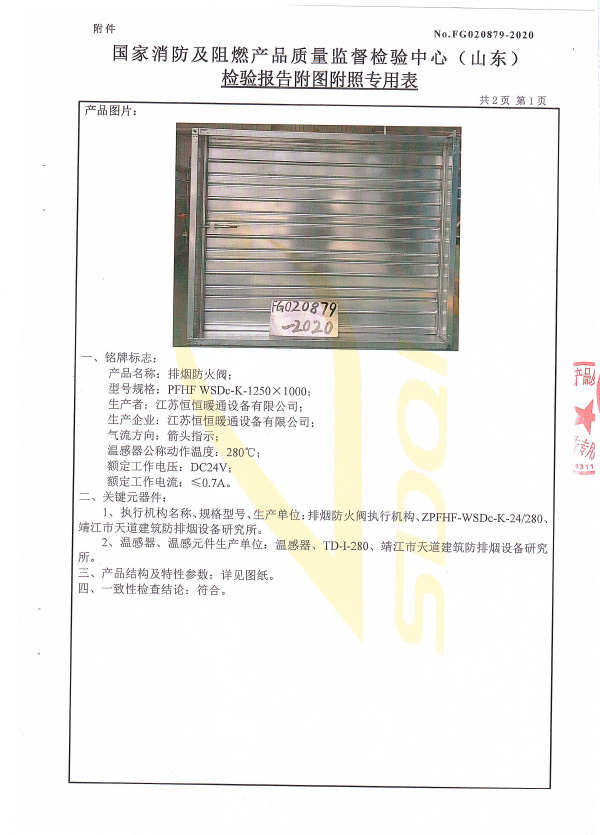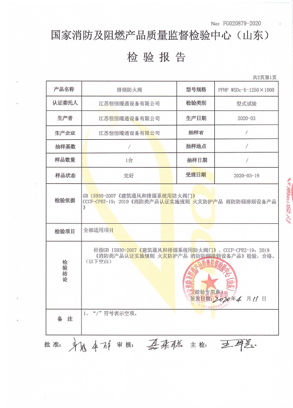防火閥認證證書2000X1000