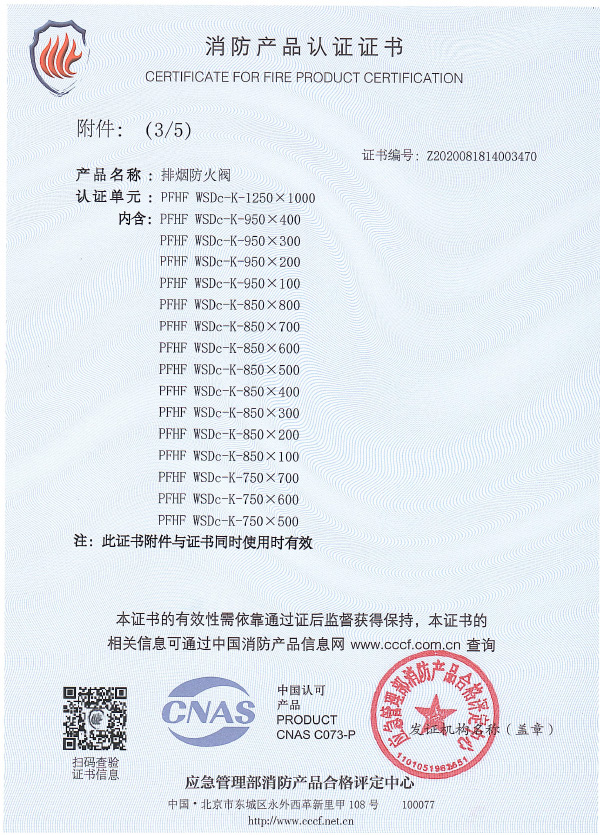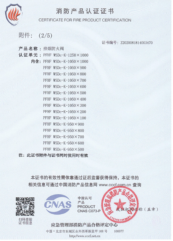 排煙防火閥認證證書1250X1000