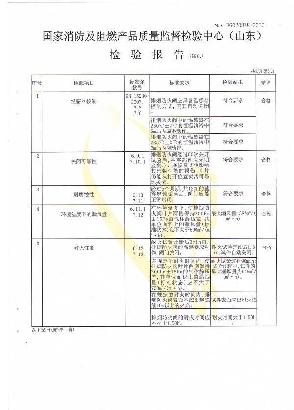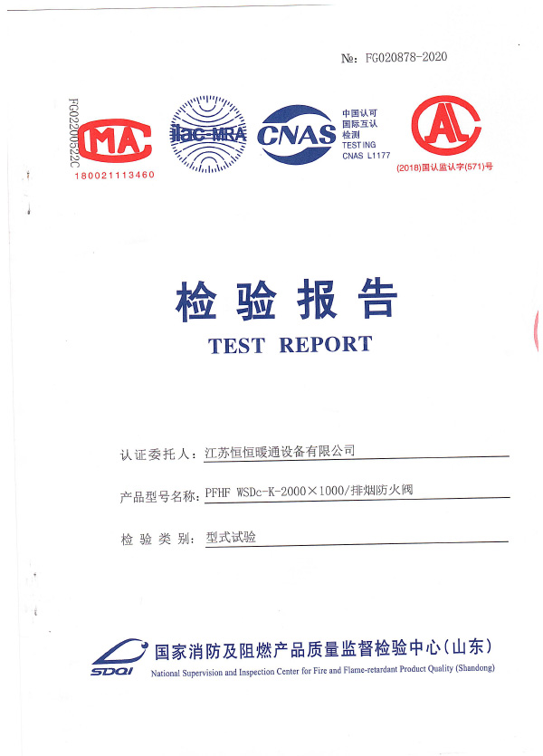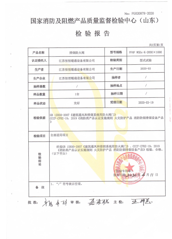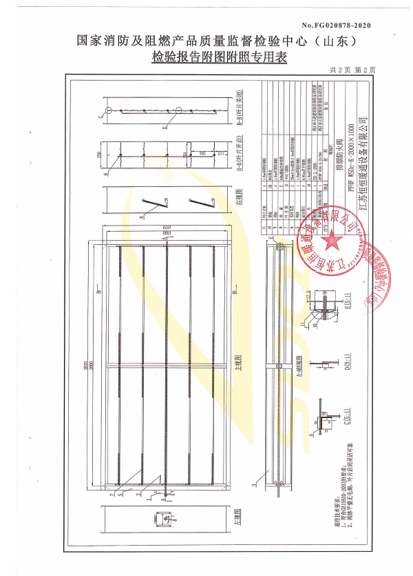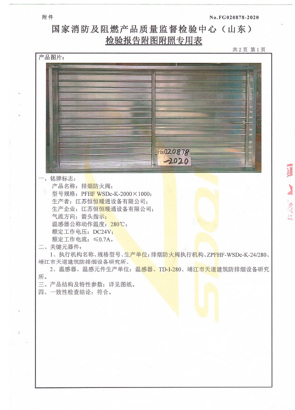 排煙防火閥認(rèn)證證書2000X1000